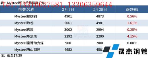 2.首鋼京唐計劃于3月2日對一條1580mm熱軋生產(chǎn)線做檢修,為期11天,總影響產(chǎn)量約在11萬噸左右;并預計于3月3日對一座5500m3高爐進行檢修至3月7日結束,為期5天左右,影響鐵水產(chǎn)量總計在6萬噸左右;此外還計劃于3月2日對酸連軋生產(chǎn)線做檢修,為期8天,總影響產(chǎn)量約在5萬噸左右。