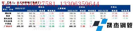庫(kù)存方面,五大品種厚壁無(wú)縫鋼管總庫(kù)存環(huán)比上周降幅再度擴(kuò)張,降至2202.69萬(wàn)噸,周環(huán)比減少21.46萬(wàn)噸,降幅0.96%。分品種看,建材庫(kù)存減少26.45萬(wàn)噸,降幅1.8%;板材庫(kù)存增加4.99萬(wàn)噸,增幅0.7%;分指標(biāo)看,五大品種無(wú)縫厚壁鋼管廠家?guī)齑姝h(huán)比減少3.66萬(wàn)噸,降幅0.5%;五大品種社會(huì)庫(kù)存環(huán)比減少17.8萬(wàn)噸,降幅1.2%。
