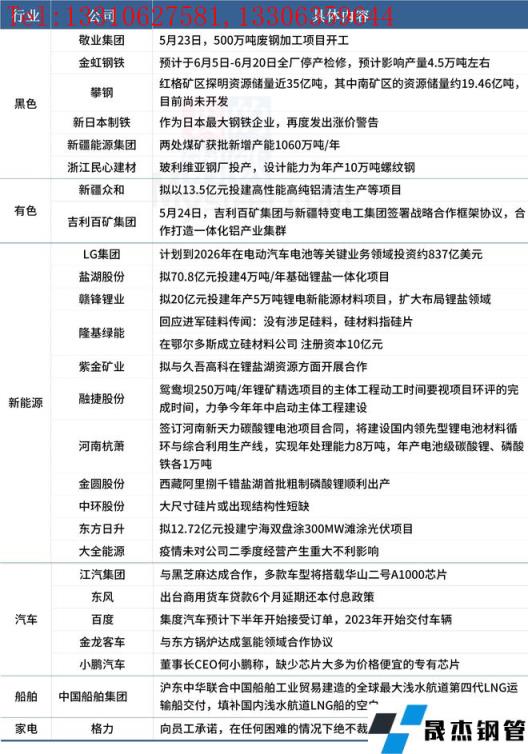 金虹鋼鐵預(yù)計于6月5日-6月20日全廠停產(chǎn)檢修,預(yù)計影響產(chǎn)量4.5萬噸左右;新疆眾和擬以13.5億元投建高性能高純鋁清潔生產(chǎn)等項目;LG集團計劃到2026年在電動汽車電池等關(guān)鍵業(yè)務(wù)領(lǐng)域投資約837億美元;格力向員工承諾,在任何困難的情況下絕不裁員。具體情況如下: